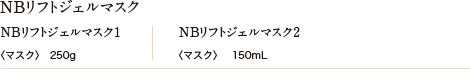 ひきしまったうるおい肌に導くジェルとローションのコンビネーションマスク。 〔 使用方法 〕 お肌にNBリフトジェルマスク1を塗布した後、ガーゼをのせ、NBリフトジェルマスク2を塗布します。 約10分間放置した後、ガーゼごと取り除きます。拭き取りは不要です。 〔 配合成分(NBリフト ジェルマスク1) 〕 ・黒ショウガエキス(ケンフェリアパルビフロラ根茎エキス)(ひきしめ成分) ・ハチミツ(保湿成分) 〔 対応機能(対応機種) 〕 ・ミオリフター(コアデザイン) |