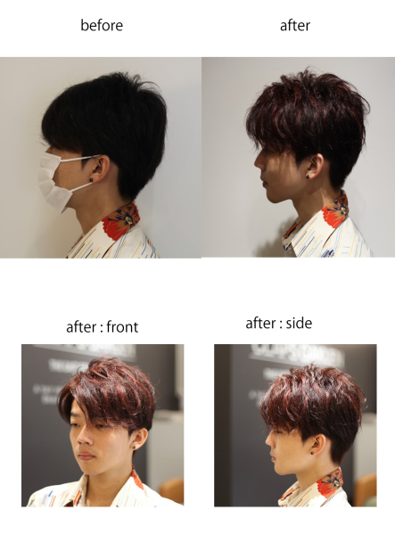 今回は、メンズに根強い人気の暖色系の色みをしっかりと表現できる、加減法を活用したハイライトカラースタイルをご紹介します。R系は日本人の持つメラニン色素により、彩度表現がしにくい事があります。このような時に効果的な同系色の異なる明度の剤をMIXして彩度感を高める方法をご紹介します。