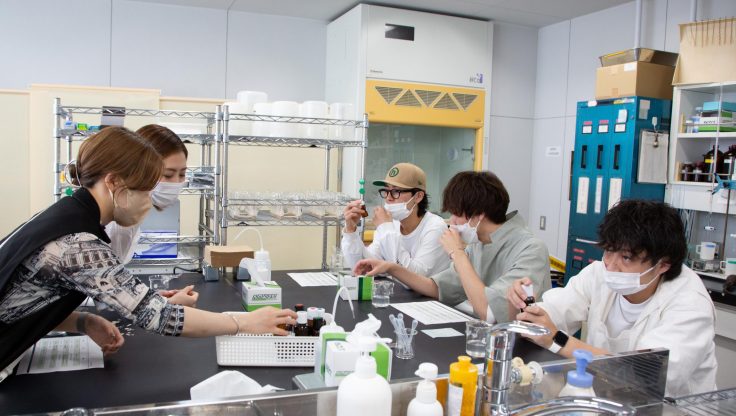 6月某日、「HITA’s PROJECT」のメンバー5人がタカラベルモント株式会社化粧品研究開発センターを訪問。「HITA’s PROJECT」のために今回、特別に訪問が実現しました。プロジェクトメンバーは最先端の研究開発の現場に触れ、様々な実験に挑戦。これまでオンラインで交流を重ねてきましたが、今回初めてリアルで5人全員が顔を合わせる場ともなりました。