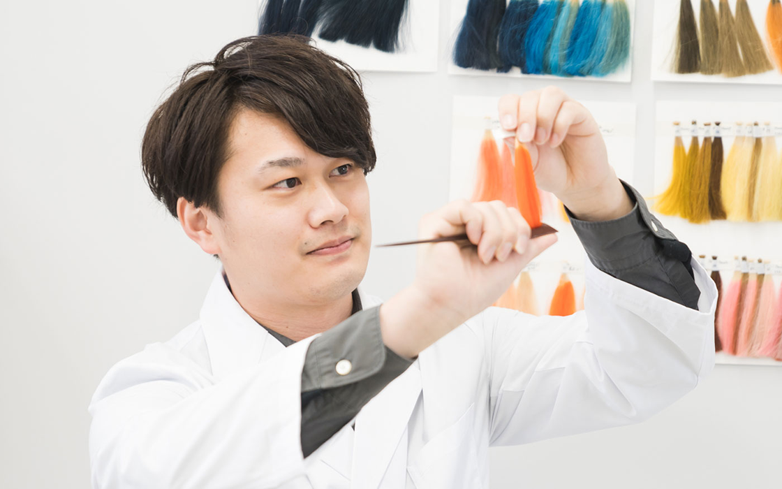 薬学系の大学院で臨床薬理学を専攻していました。担当教授が主に内科学を専門にし、もう一人は神経薬理学専門にする准教授。私は、そのお二人を師事していたこともあり、糖尿病やアルツハイマー病など、加齢に関連した疾患の創薬研究が専門でした。大学院時代の同期は、製薬会社の研究員志望がほとんどの中、美容にも興味があったのでタカラベルモントの入社試験を受けたところ合格。学生当時通っていたサロンの憧れの美容師さんに「タカラベルモントに合格したよ!」と話したら、「すごく良い会社に合格したね」と言ってくれたこともあり入社。以来8年間、ヘアカラー研究一筋です。今回発売になった『ルビオナ』には基礎研究から関わっています。加齢により起こりうる疾患の“糖尿病”や“アルツハイマー”、そして“白髪”。研究としては、全く異なる分野です。しかし、当時学んでいた学問が今のグレイカラー研究にも役立っています。特に、カラー剤では頭皮の刺激についての研究は、常に向き合う課題です。「人間は必ず歳をとる生き物」という前提での研究は、加齢という言葉をネガティブにとらえるのではなく、どう立ち向かっていくのか?そのためのモノづくりは?という視点で見れば、創薬研究もグレイカラー研究も根底は一緒だと考えています。