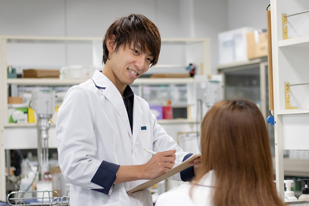 学生時代は、「患者さんの病気を治したい」という想いから、抗がん剤の研究をしていました。しかし、就職活動の中で、化粧品も使うことで美しくなれる、使う人の気持ちを高め、「心を癒す」という点で、方向は同じであることに気づきました。入社してすぐ担当したヘアケア製品のレビューで「これがないと生きていけない!」というコメントをいただいたとき、「心のケア」というか「人助け」に近いものを感じてとても嬉しかったのを覚えています。それ以来、「自分自身がワクワクして本当に欲しいと思えるモノづくり」をモットーにヘアケア製品の開発に没頭しています。