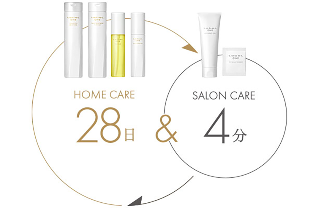 「LebeL ONE」は、“28日”という頭皮のターンオーバーに合わせたホームケアと月1回のプロの技術による“4分”のサロンケアを連動させることで、潤う頭皮と真の美しい髪に導くことを目指したヘアケアシリーズです。