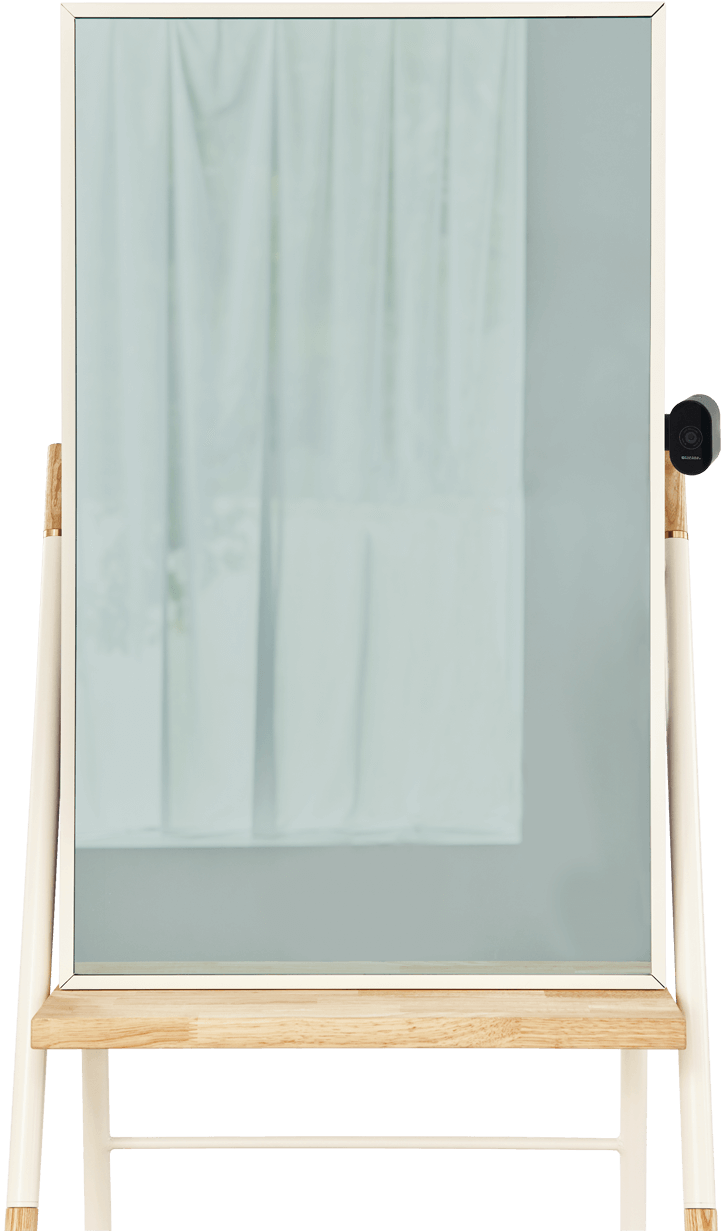 専用カメラ”カメラを取り外すことで、合わせ鏡のようにサイドやバックスタイルもミラーで確認しながら撮影が可能。ミラー横の定位置に固定すれば、両手を使ってスタイリングをレクチャーしながら、簡単に動画を撮影することも。