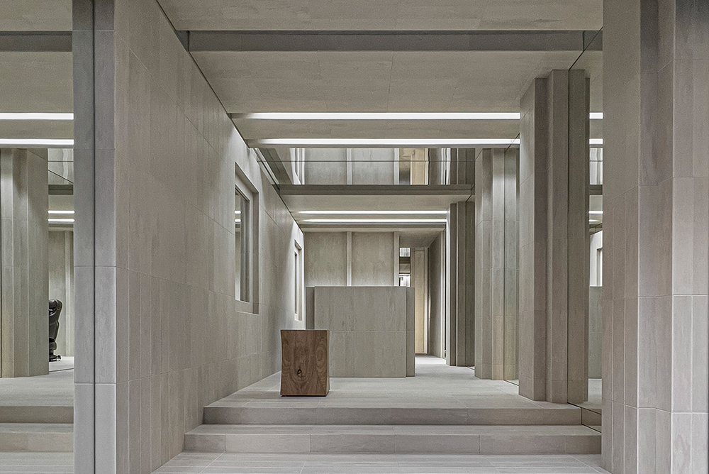 都内と千葉県内に複数店舗を展開するサロンの支店。美容室らしさにとらわれず、かつ普遍性を持つデザインが求められた。機能面としては、セット面を3列に分けて回遊動線を確保。1列はメイクにも対応し、スクリーンで仕切ると着付けや練習ができる空間に。残る2列は入社式などのイベントにも対応でき、さらに鏡の効果による拡がりを加えた。細部では、梁の両脇に設けた凹みにライン照明を隠し、屋根の隙間から漏れ入る光として表現。陰影と質感、見え隠れ、多様な場、ほど良い一体感などの視点からトーンを整え、落ち着きや品が感じれられる居心地の良い空間をデザインした。