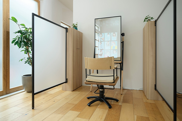 サロンルーミングラインの製品を導入すれば、心地よさと使いやすさを両立する半個室空間が生まれ、満足度の高いサロン体験を提供することができます。