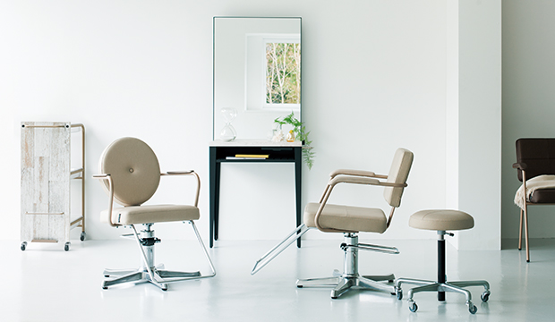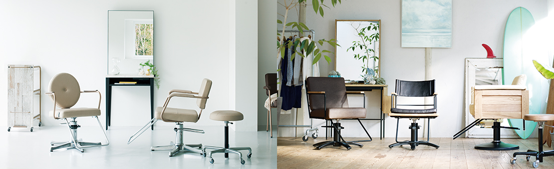 お客様の目に最も長く触れるミラーやワゴン。チェアとのバランスを大切に、サロンの雰囲気を演出します。