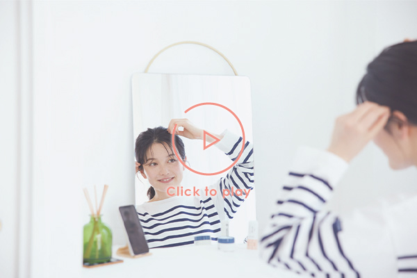 ミラー横の定位置に固定すれば、両手を使ってスタイリングをレクチャーしながら、簡単に動画を撮影することも。