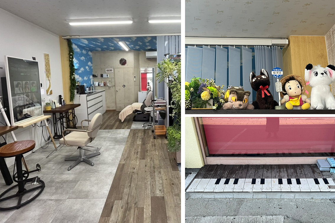 自作のピアノ鍵盤やトトロの仲間たちが並ぶ棚など、趣味を詰め込んだ可愛らしいサロン空間は、「来るたびに何か変わってるよね!間違いさがしだね♪」とお客様にとっても楽しみのひとつになっているそう。