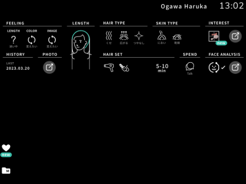 まずは、「プロファイル」機能を活かして、お客さまの要望や悩みを事前にホームカウンセリングで引き出した状態からカウンセリングを開始。これまで辿り着くのに時間がかかっていた仕上がりのイメージ写真も、AIによる「類似検索」で髪型や色のわずかな違いまで、細やかにニュアンスを共有できるようになりました。