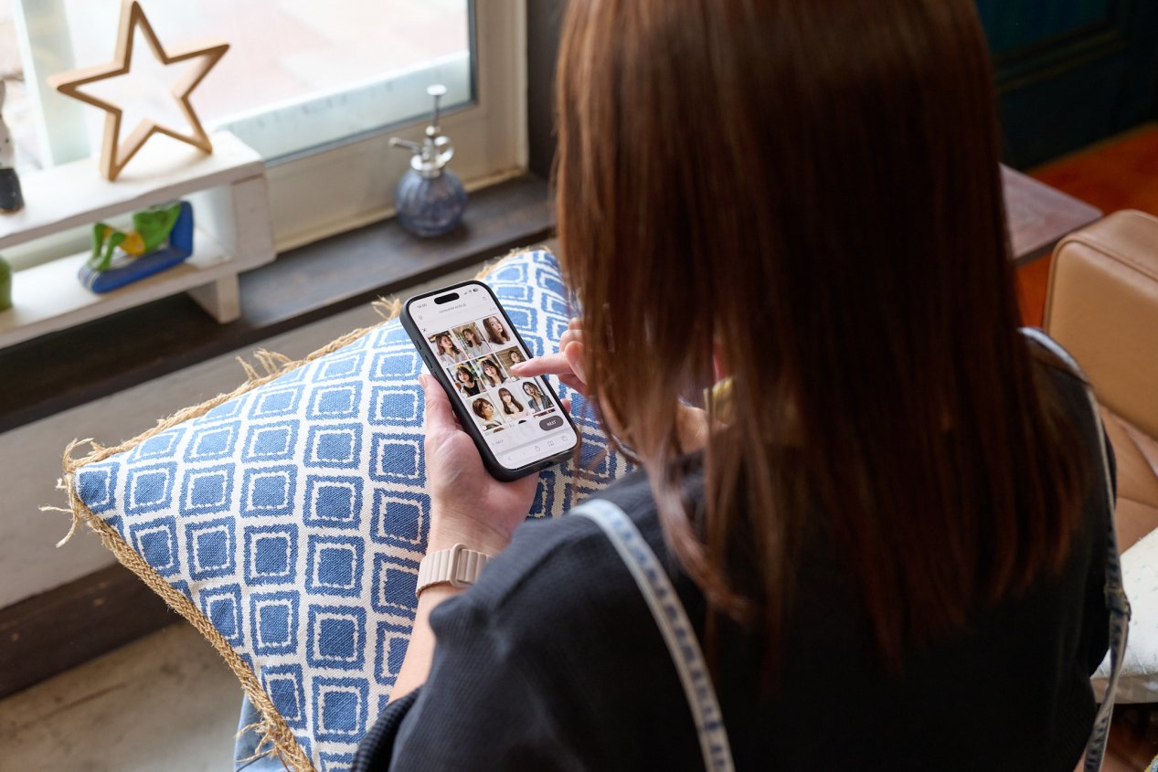 「長く通ってくださるお客さまとも、美容の話をする時間が増えました。例えば、春になったらパーマをかけたい、というようにお客さまと少し先の目標を共有して、どういうパーマにしたいのかECILAで目指すイメージを可視化します。お客さまが気になったヘアスタイルに、♡マークを付けて『ブックマーク』して、そのために次回はこの長さを目指そうというステップも可視化して、カルテに記録しておきます。春にはこのパーマだね、という目標を一緒に目指すことができるし、その途中で気持ちが変わって、もっと軽いパーマにしたくなっても全然構わなくて。あの時は、こういう髪型にしたい気分だったんだね、ということをお客さまの足跡として記録しておくことができます。」