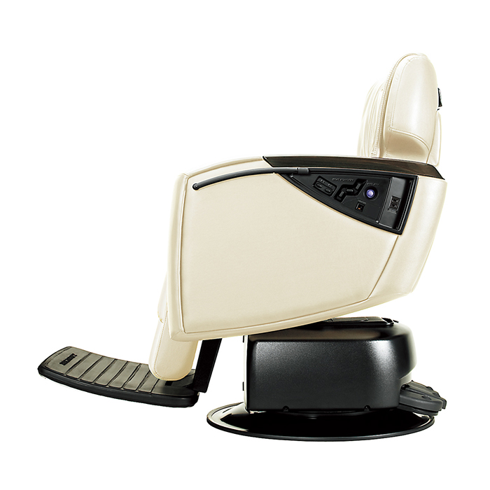 極上のリラクゼーションを提供できるフルフラットレッグレスト。ステップ部のクッションは取り外しができ、靴を脱ぐことを敬遠されるお客様にも即座に対応が可能。(BB-DVF/BB-DVFT)