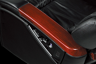 高級感の漂う丁寧にグロス仕上げされた天然木を贅沢に使用。ウレタン塗装仕上げの後にUVコートを施し、左右のアームレストから背面にまで回り込むデザインで、ワンランク上の質感を。