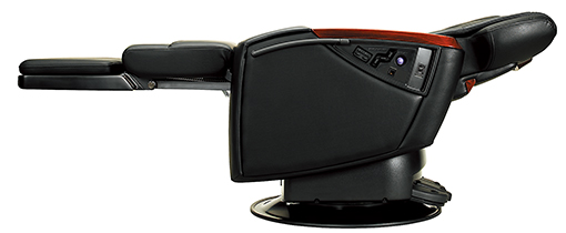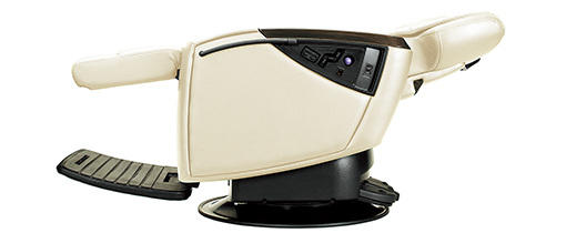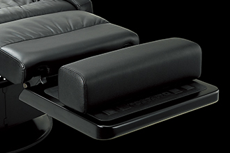 新機構によるフルフラットアームレスト。ゆっくりと左右のアームが降下し、背面・座面とほぼ完全にフラットになることで、エステティックサービスにも対応が可能。