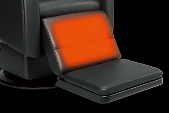 レッグレスト部にヒーターを内蔵。足元をソフトにあたため、リラックスタイムをより快適なものに。