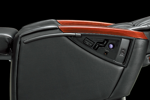 ステップの位置はそのままに、レッグレストが伸びながらほぼ水平位置まで上昇可能。さらにヒーターも標準装備。小スペースでもベッド感覚に近い本物のくつろぎをお約束します。(BB-DVR/BB-DVRT)
