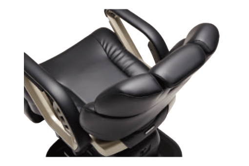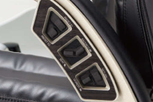 包み込まれるような座り心地を感じるESレザーの採用、1台ごとに表情を変えるギャザーなどの上質感溢れる仕様に加え、レッグレストと背もたれは単動機構によりそれぞれが独立して動き、ほぼフラット位置まで可動。