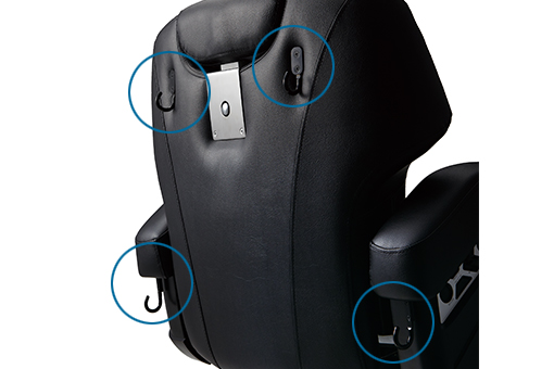 シート座面にはバケット形状を採用。左右に膨らんだ座面がお客さまを優しくホールドし、ゆりかごのように包み込まれる座り心地を実現しました。さらに、シートの張り形状やクッション素材などにもこだわり、長時間の施術でもお客さまに快適にお過ごしいただけます。