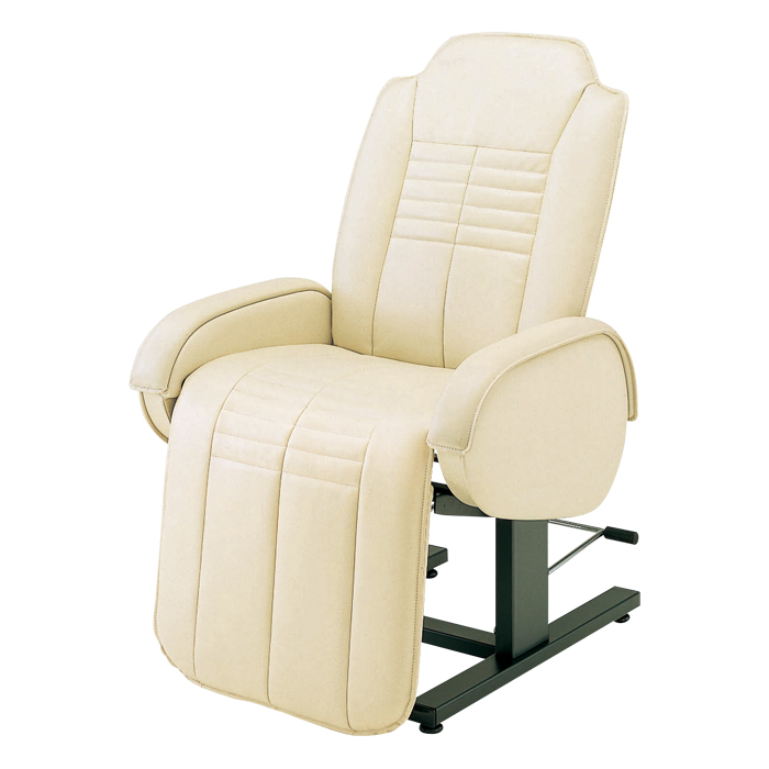 フェイシャル、ネイル、メイクのトリートメントを快適なポジションで行えるリクライニングチェア。フットレストがチェア本体から独立しているので、フットケア、ペディキュア技術にも対応できます。