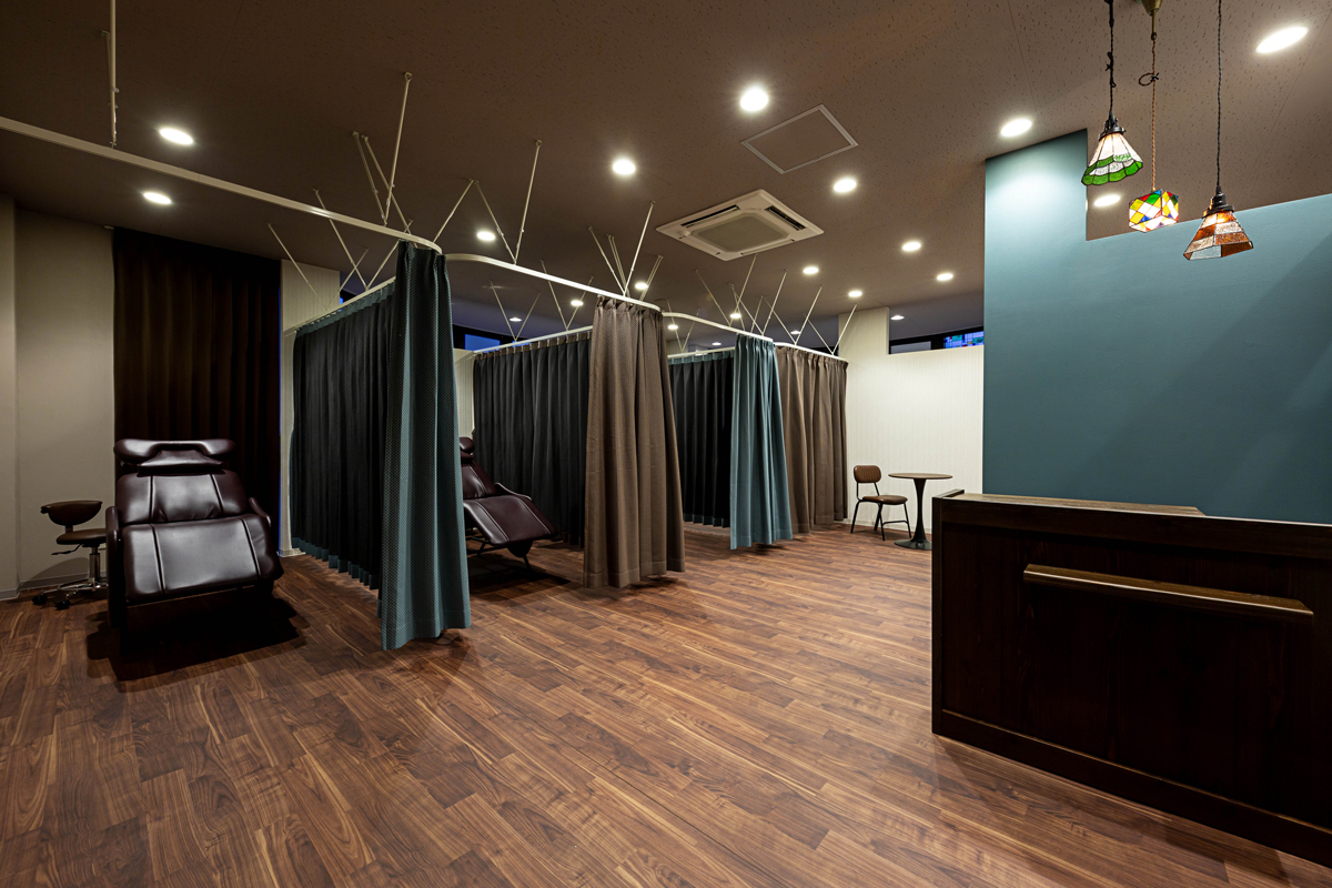 カウンセリングにも使用できるチェアは、手動でフラットな状態までリクライニング可能。アイラッシュ施術時に快適な寝角度に設定されているので、長時間の施術でも心地よく過ごせます。