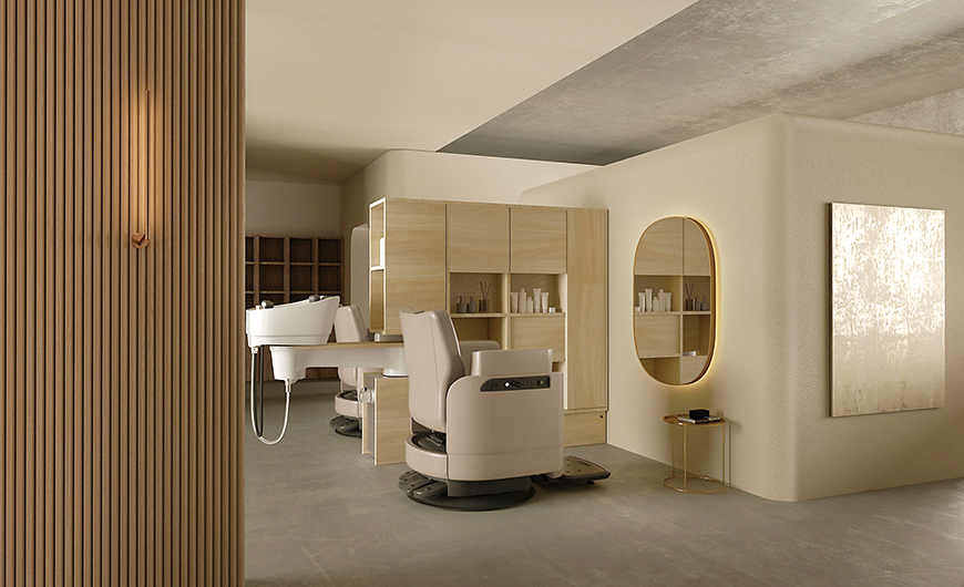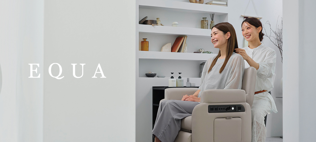 個室・半個室での定点サービスにふさわしい多機能チェア「EQUA」が、サロンタイムをより心地よく、満足度の高いひとときへ導きます。