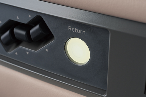 ボタンひとつで初期のポジションに戻るオートリターンスイッチ。電源を入れるとLEDライトが優しく点灯するので、スイッチの位置がわかりやすく、電源のON/OFFもひと目でわかります。