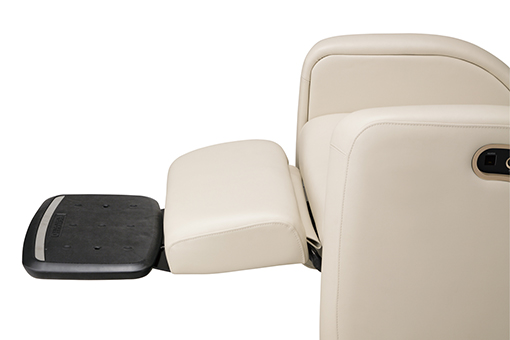 レッグレストがほぼ水平まで上昇。ステップも連動して上昇するので、寝姿勢時にも、足先までしっかりサポートします。