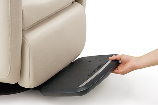 より一層のくつろぎのため、お客様に靴を脱いだ状態で施術を受けていただけるよう、ステップの上に置いて使用できます。(樹脂ステップのみ)