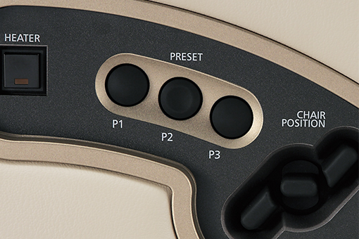 便利なプリセットボタンを3つご用意。シャンプー、フェイシャルケア、ハンドケアなど、メニューごとにお好きなポジションをあらかじめ設定しておけば、ワンタッチで設定ポジションに移行します。