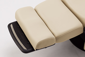 レッグレスト部にヒーターを内蔵。ヘッドスパやフェイシャルケアなどを行う寝姿勢時に、足元をあたため、くつろぎ感を高めます。