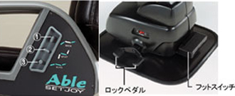 つねにワンタッチで希望の作業位置やリターン位置まで動かせるオート機構を標準装備。アップ・ダウンはベース後部にあるフットスイッチで操作。微調整ができるマニュアルスイッチ((1)寝起こしスイッチ(2)昇降スイッチ)と(3)オートスイッチは使いやすい手すり部分に装着しました。