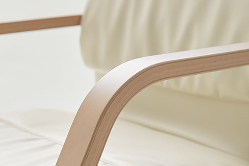 弓なり形状の背もたれに加えダブルクッションとギャザーがより良く身体に馴染み長時間の着座を快適にします。