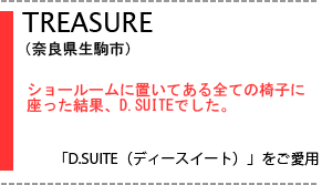 TREASURE (奈良県生駒市) ショールームに置いてあるすべての椅子に座った結果、D.SUITEでした。