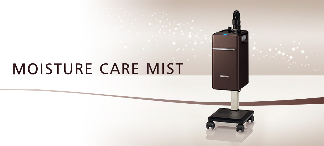多くの可能性を秘めたミストのチカラに着目し、開発されたモイスチャー ケアミスト。1秒間に160万回振動する超音波振動子によって、やわらかな微細ミストを生成します。ミストの温度と量を自在にコントロールし、YUMEスパなどのリラクゼーションメニューや酸性カラー、パーマ(カーリング剤等)にも幅広く対応。やさしく、ていねいに仕上げます。高性能でありながらコンパクト。上質なサロン空間によくマッチングするキュービックデザインを実現しました。