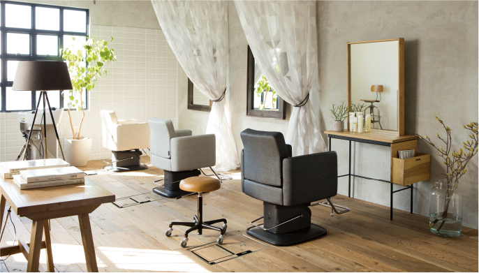 なんでもない日の、ちょっとした贅沢。背伸びしすぎない上質さ。シンプルさにほんの少しの愛嬌をプラスした、OASIS CHAIR Mee。電動化された快適機能を、インテリアへの調和を考えた家具調のフォルムで包みました。移動式のシャンプーシステムYUME OASISに組み合わせることで、お客さまに自分だけの時間をお過ごしいただけます。