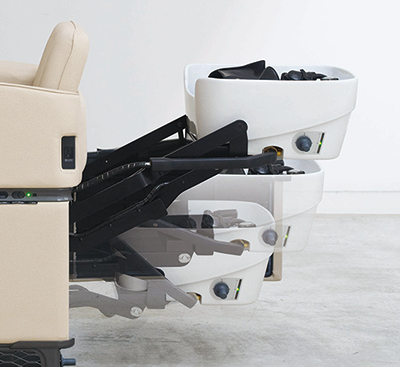 ワンタッチでチェア内部に収納されているボウルがシャンプー位置へ移動。カットはもちろんシャンプー、パーマ、カラー、ヘッドスパにいたるまでONE一台で行えるため、お客さまを待たせない質の高いサービスを提供することができます。 ※特許出願中
