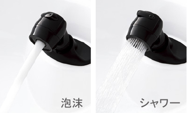 勢いのあるシャワーと、水はねしにくい泡沫シャワーの切替が手元で可能です。