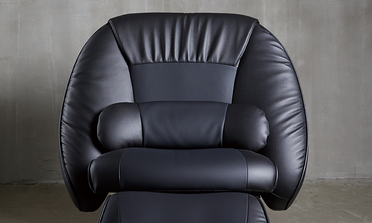 厚みのある上質なウレタンレザーに深いギャザーを入れることで、クッションの柔らかさを効果的に引き出しました。さらに座ったときの感触にこだわり、バックレストにダブルクッションを採用しています。