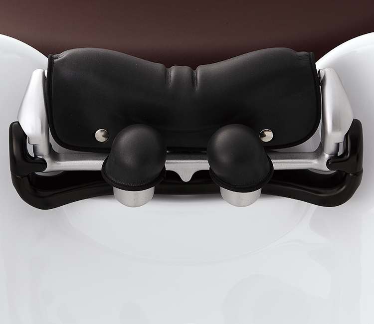 リア(YUME)ボウル仕様のネックデバイスは、2つのヘッドピローとネッククッションの3点でバランスよく支え、頸部への負担を軽減します。《特許出願済》