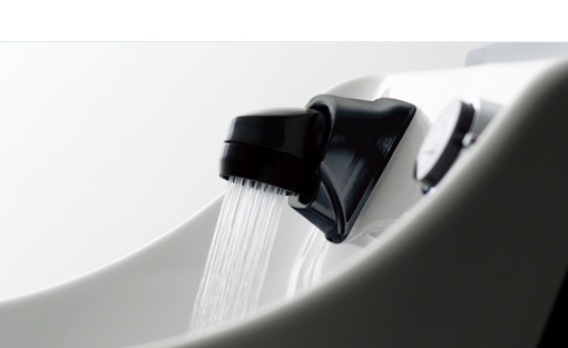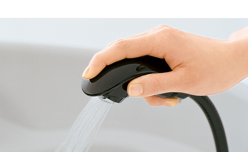 勢いのあるシャワーと、水はねしにくい泡沫を簡単に手元で切り替えて効率よく洗い流すことができます。