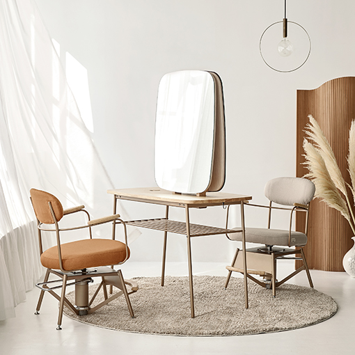 家具椅子をイメージさせる専用チェアベースを新開発。家具らしさを演出しつつ、昇降機能も兼ね備え、デザイン性と施術性を両立させました。