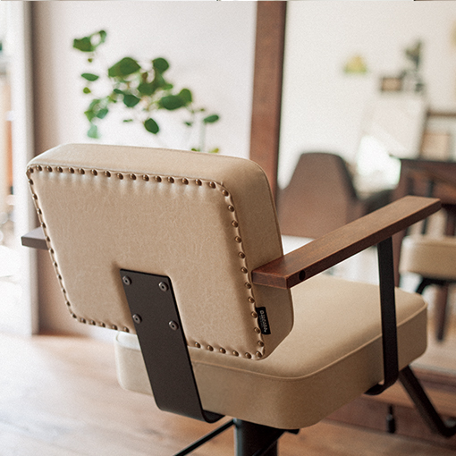 お客様を受け止めるふっくらとした張りに、シンボリックな表情を作り出すボタンをプラス。手に馴染むウッド手すりが作り出す柔らかな存在感が、リラックスした時間を演出します。 -