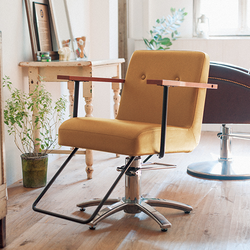 ゆったりとくつろげるボリューム感と、キルティング加工が生み出す贅沢かつ繊細な座り心地。手すり側面にはヴィンテージ感を演出する鋲をデザインし、サロンで過ごす時間を特別なものへと導きます。 -
