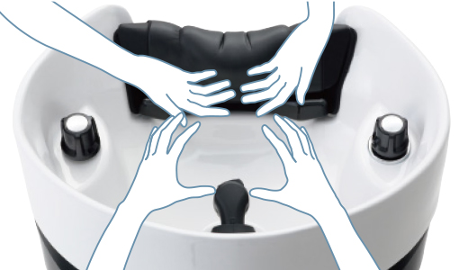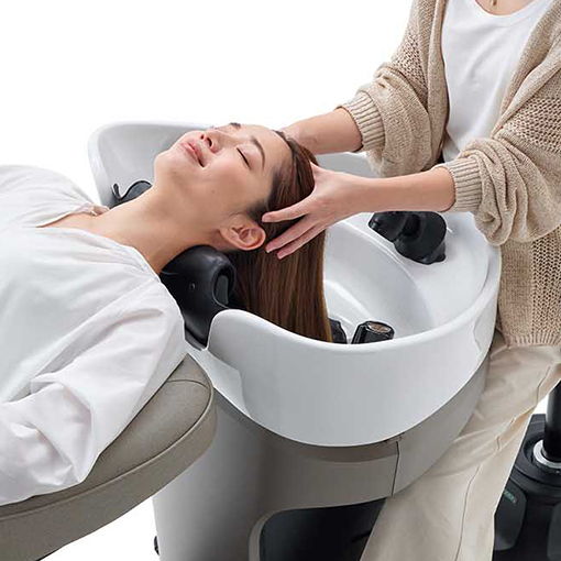 後頭部のスペースが広くなったことで、ネープや耳うらが洗いやすくなり、流れるようなシャンプーワークを実現します。
