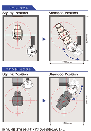 ● 枕と回転するシートで、フェイシャルやマッサージ等のトータルビューティーにも対応