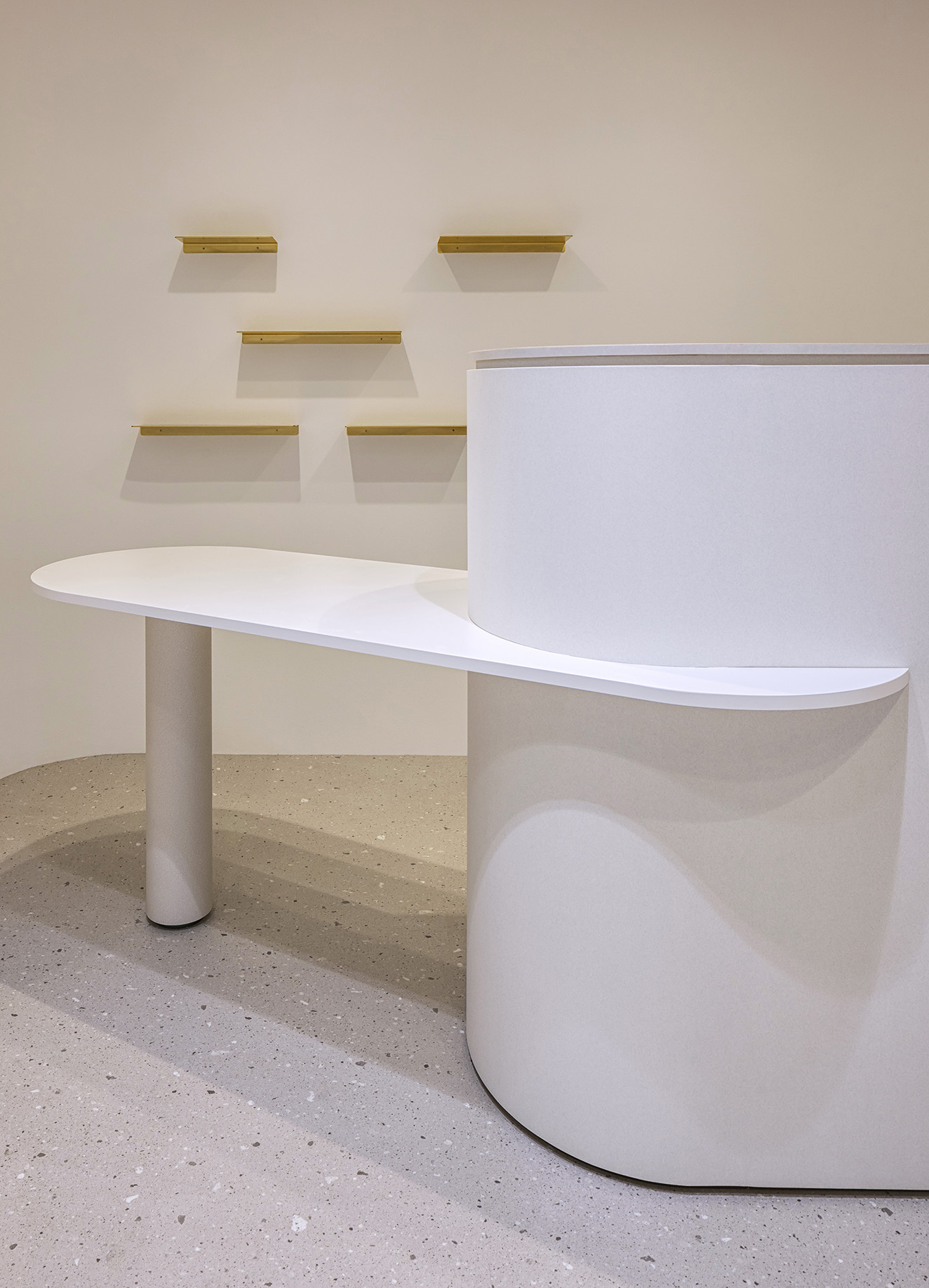 店名のPhilino'a(フィリノア)はハワイ語の「繋がる」「輝く」「願い」「愛する」を組み合わせた造語だ。波で角がとれたようなイメージで丸みを帯びた造形で構成した。