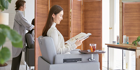 また、「W SWING YUME」を設置することで生まれた半個室空間や、スパブースに設けたロールスクリーンで、プライバシー性が飛躍的にアップ。ワンランク上のサロン空間が出来上がりました。さらに、その上質な空間を活かしたスパメニューも独自に考案。メニュー開発では化粧品ブランド「ルベル」の担当者と緊密に連携をとり、美容室ふつきを利用する女性と男性、それぞれに魅力ある内容を作り上げています。