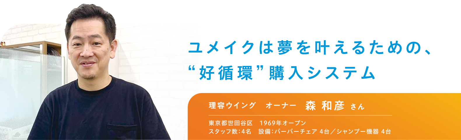 私たちのサロンは、いつお客様が来店されても何かいつもと違う「新しさ」を感じていただけるようなサロンを目指しています。そのために設備投資は必要不可欠になりますが、機器の老朽化や不意の故障は避けることができません。ユメイクの備えがあると安心して経営ができるし、必要なときに必要な分だけ使用できるのでユメイクをしていてよかった、とたびたび感じています。